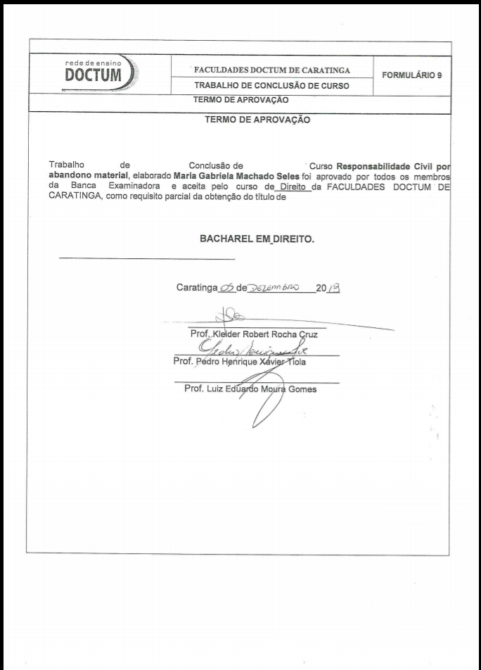 Citação: Trabalho de conclusão de curso desenvolvida pelo 10º período de Direito das Faculdades Doctum de Caratinga, como exigência parcial para aprovação na disciplina Trabalho de Conclusão de Curso II. Sob orientação do professor Msc. Kleider Robert Rocha Cuz.