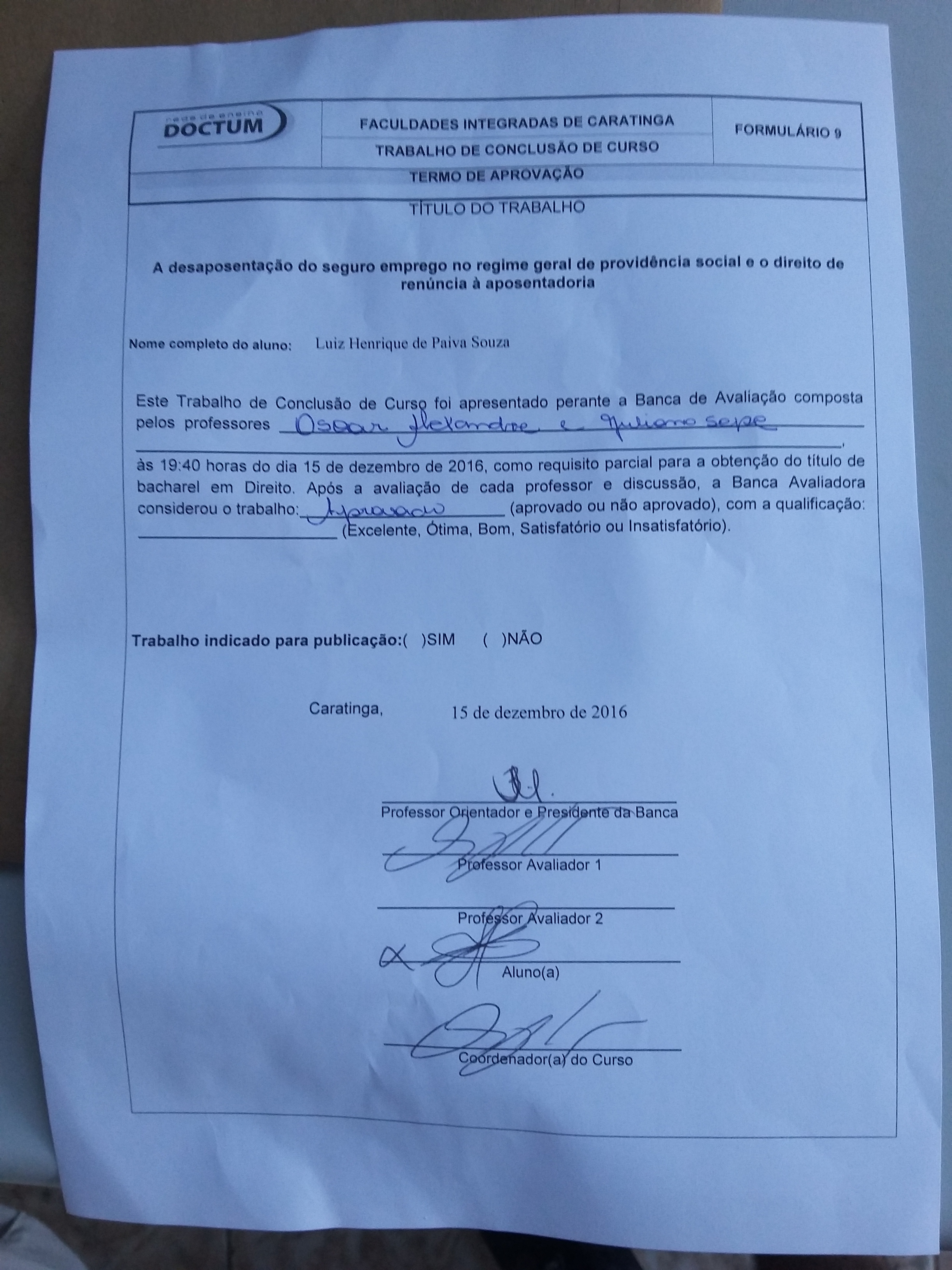 http://hdl.handle.net/123456789/669| Título: | A DESAPOSENTAÇÃO DO SEGURADO EMPREGADO NO REGIME GERAL DE PREVIDÊNCIA SOCIAL E O DIREITO DE RENÚNCIA À APOSENTADORIA |